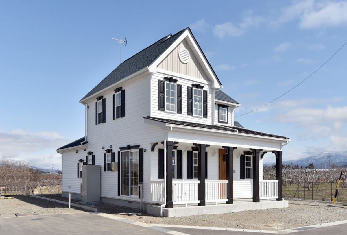 アスファルトシングルの屋根とラップサイディングの外壁が複雑に組み合わさり、左右対称でない独特な表情を持つクイーンアンスタイル。シンメトリーな 外観とデンディテールモールディングやカルチャードブリックなどを施工したジョージアンスタイル、切妻で小屋裏を2Fとし、ヨーロッパの植民地であった時 代背景によるコロニアルスタイルなどetcご用意しております。